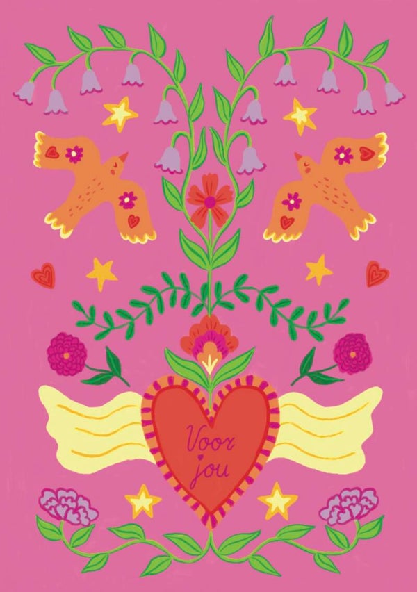 Cadeauset: A4 Art print, kaartenset naar keuze met 4 kaarten en ansichtkaart ‘Voor jou’