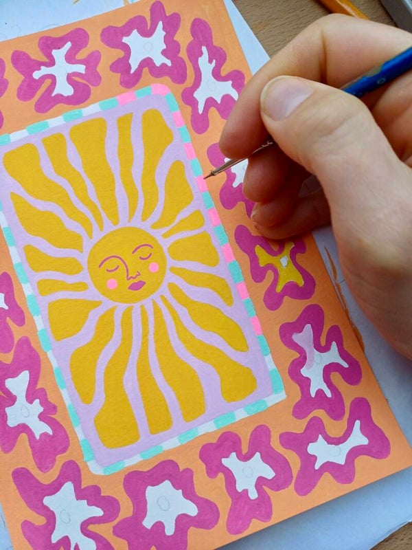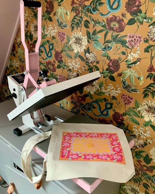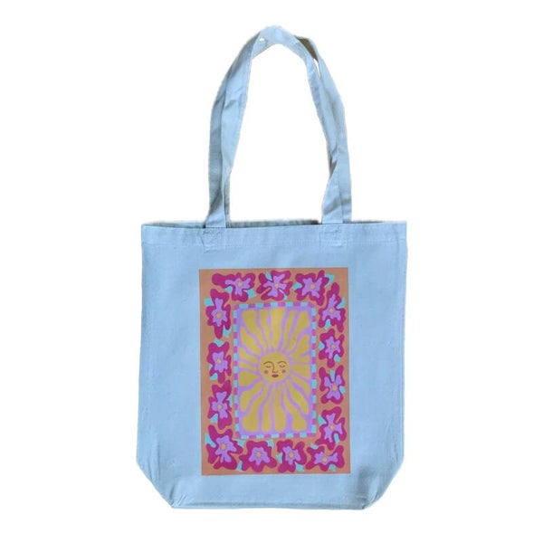 Stevige canvas tas met vrolijke 'Sunshine' illustratie afdruk. Deze tassen worden door Kirsten in eigen beheer met hoge kwaliteit afdrukken gemaakt, waardoor ze uniek zijn.