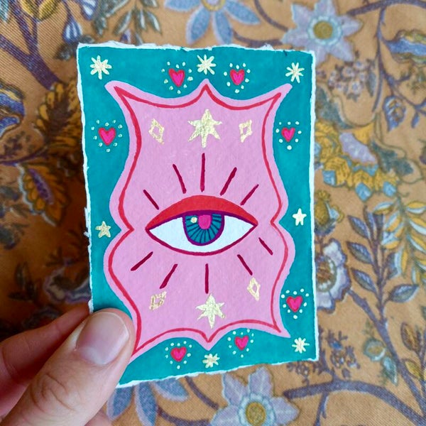 ‘Eye’ Geschilderd kunstwerk op handgeschept papier (7,4x10,5cm)