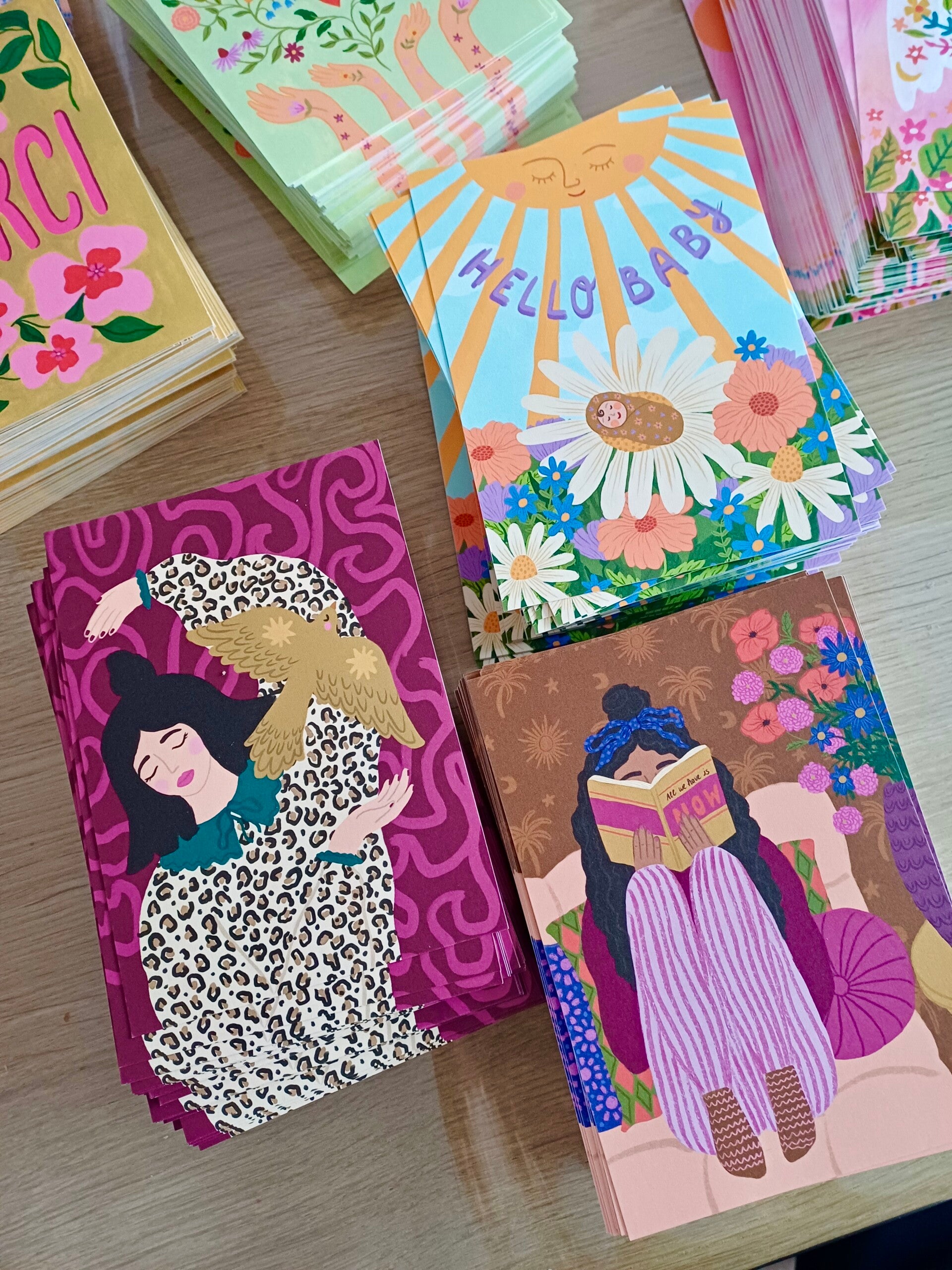De kaarten zijn professioneel afgedrukt op stevig (300 gr) Biopuur papier. Dit is een duurzame papiersoort zonder optische witmakers. De afmeting van de kaarten is 10,5x15 cm.
